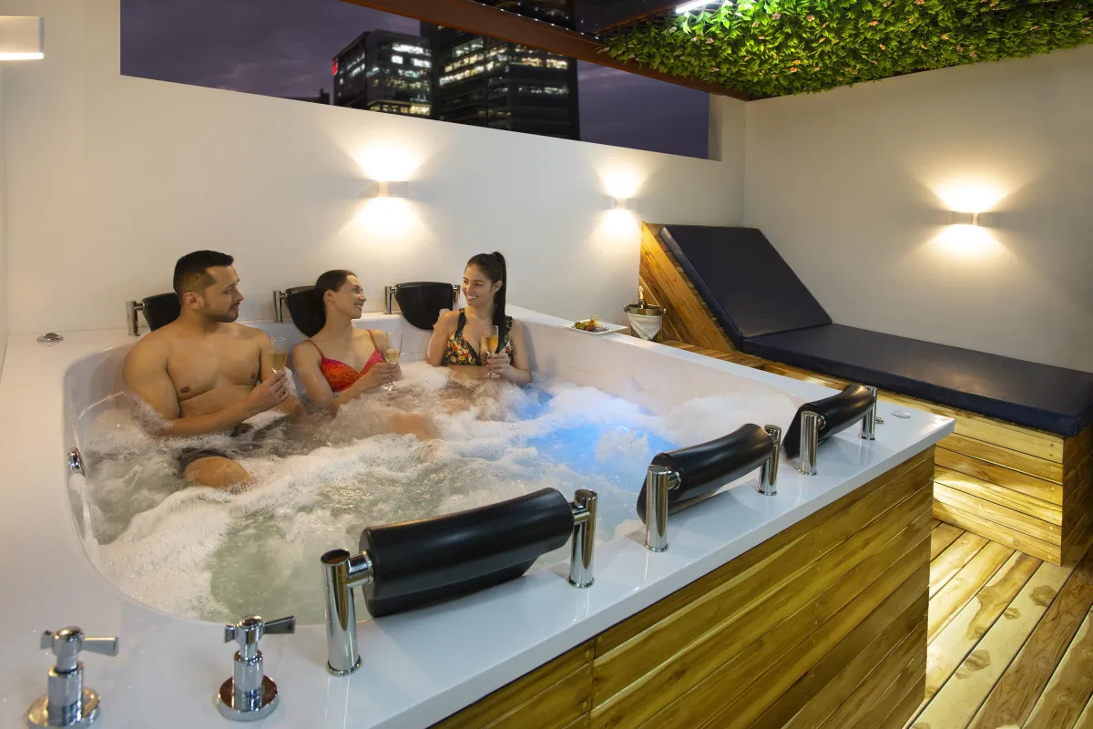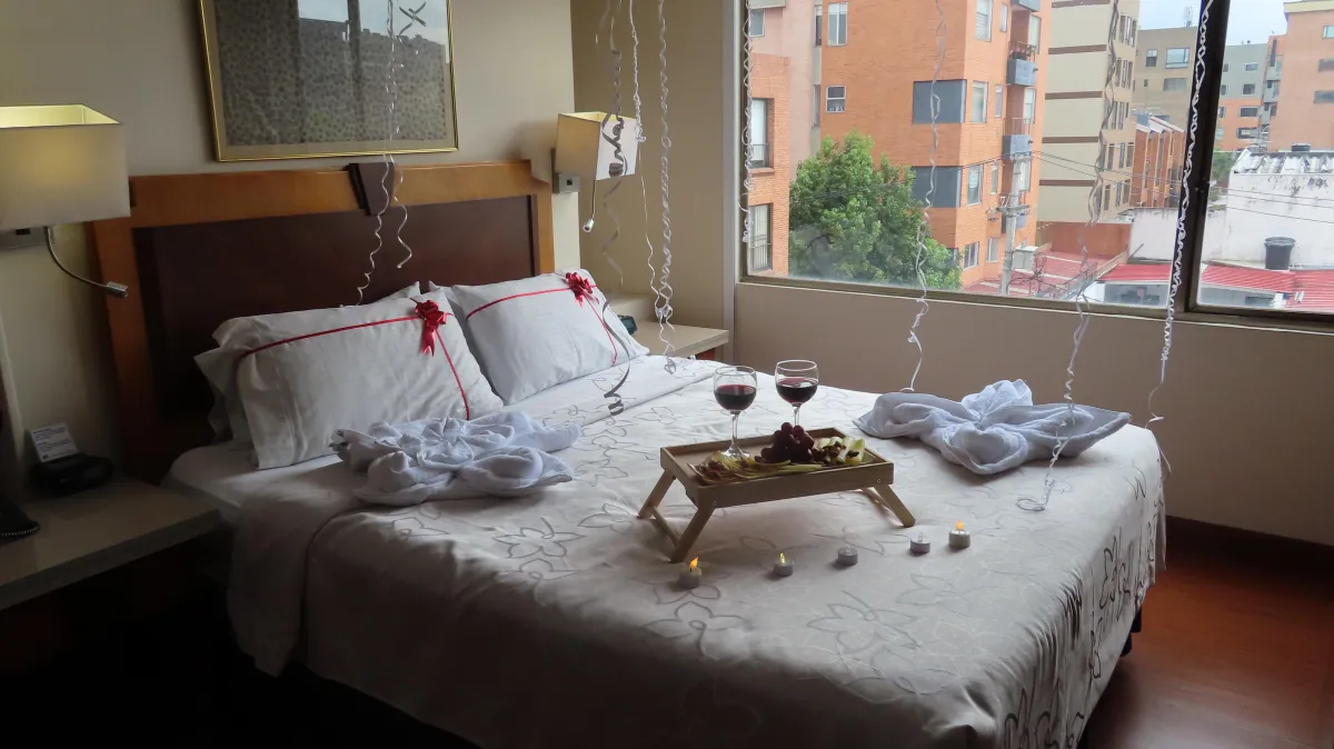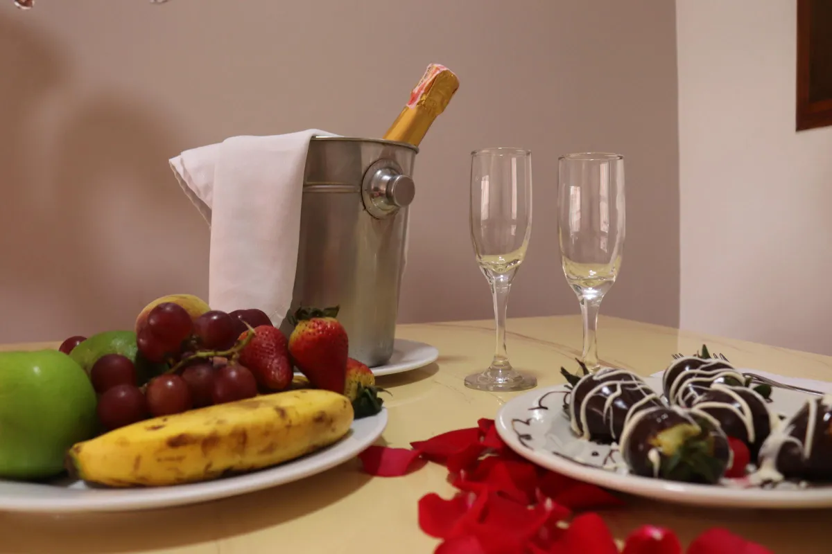 Su estadía incluye una suite para dos personas, bebida de bienvenida, fresas cubiertas de chocolate, un plato de quesos acompañado de 2 copas de vino de la casa, velas flotantes y globos, buffet de desayuno gourmet y estacionamiento.